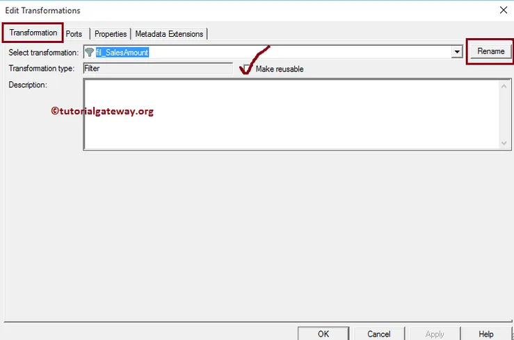 - Make Reusable: If you check mark this option then, this transformation will become reusable transformation.