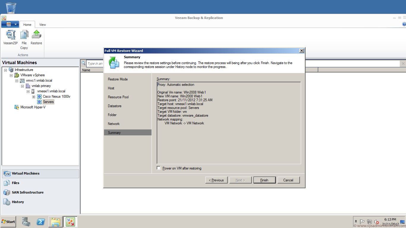 Veeam Backup and Replication Free Edition – Restoring a virtual machine within VMware vSphere 5.1