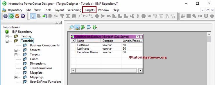 Step 2: Create a Target Definition for Informatica Unconnected Lookup Transformation
