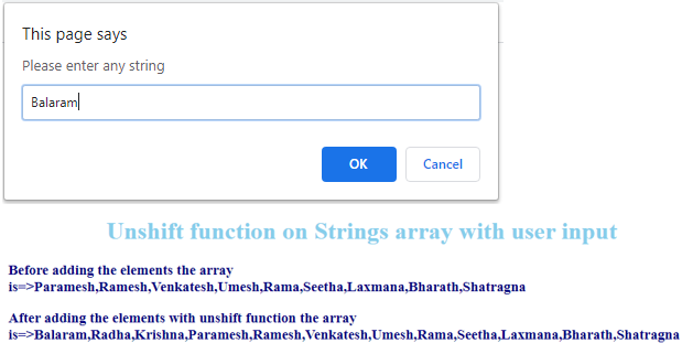alert("After adding the elements with unshift function the array is=>"+stringArray);//line7